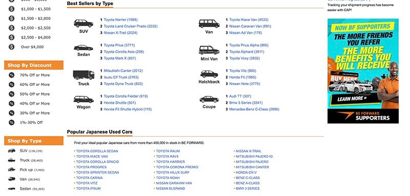 BE FORWARD is widely used by car dealers, import businesses, and individual buyers looking to purchase vehicles directly from Japan.