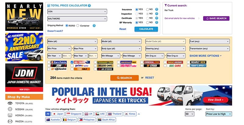 BE FORWARD is a Japan-based vehicle exporter specializing in used cars, trucks, buses, and machinery for international buyers. The platform allows customers to browse inventory from Japan and order vehicles for export to many countries worldwide.
