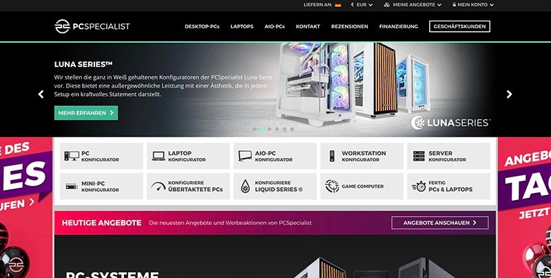 PCSpecialist Germany is a custom PC builder and retailer offering configurable gaming rigs, desktops, notebooks and professional workstations with tailored hardware options.